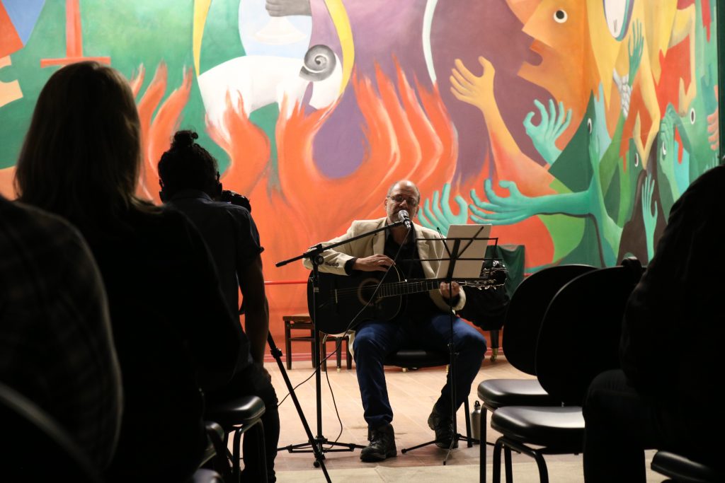 Foi realizada na última sexta-feira, dia 14, mais uma edição do Livro na Praça – ler para se libertar, evento promovido pela Editora da Universidade Federal de Santa Catarina (EdUFSC). O encontro teve participação do diretor do Centro de Comunicação e Expressão (CCE) da UFSC, Fábio Lopes, que falou sobre a obra do renomado historiador e um dos maiores intelectuais públicos contemporâneos: Timothy Snyder, professor da Universidade de Yale. A atração musical foi Jéferson Silveira Dantas, também professor da UFSC, que homenageou Vitor Ramil.