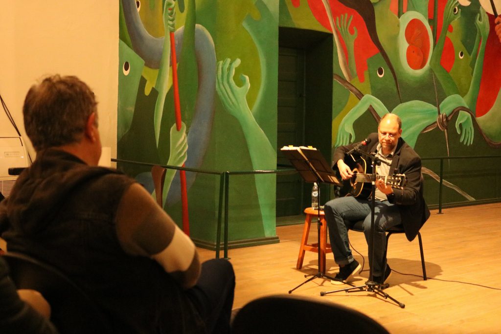 Com o início do segundo semestre letivo de 2023 na Universidade Federal de Santa Catarina (UFSC), o projeto Livro na Praça, da Editora da UFSC (EdUFSC), também retomou as atividades. Em edição realizada na última sexta-feira, dia 11, Lino Peres e Raphael Grazziano, professores de Arquitetura da UFSC, debateram os Planos Diretores de Florianópolis a partir da obra “Reconstruindo paisagens: desafios socioespaciais para a Grande Florianópolis“, assinada também por outros docentes. O evento teve apresentação musical de Jéferson Silveira Dantas com a temática cidade.