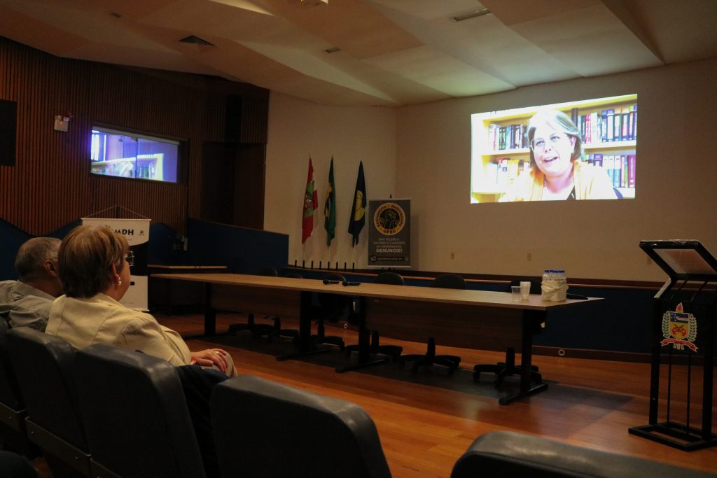 Na primeira mesa de debate do evento promovido pelo IMDH, Maria Tereza destacou que seu histórico de atuação na defesa dos direitos humanos contribuíram para a sua cassação, junto com o vídeo. Única parlamentar de esquerda em uma Casa Legislativa majoritariamente masculina, ela lembra do machismo e perseguição que sofreu. Afirma que foi acusada de “manchar o nome da cidade” e de espalhar notícias falsas: “um vereador perguntou se na minha formatura de Direito eu fiz o juramento com a perna e não com o braço.” Moradora da cidade desde os 16 anos, Maria Tereza teve que passar um período fora de São Miguel do Oeste por conta das inúmeras ameaças de morte que começou a receber.