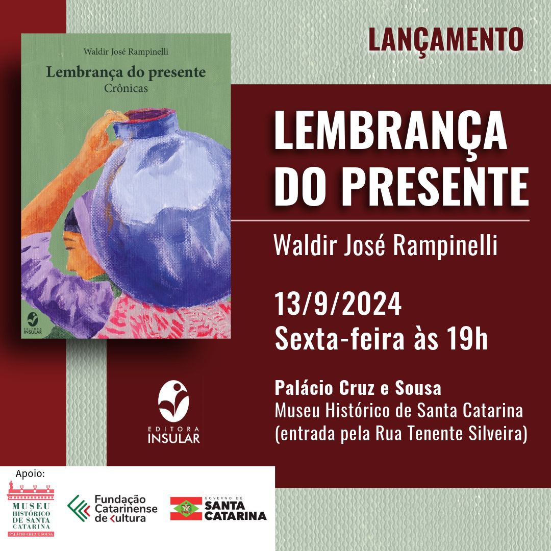 Ocorre na próxima sexta-feira, dia 13, no Palácio Cruz e Sousa, em Florianópolis, o lançamento do livro “Lembrança do Presente”, do professor aposentado Waldir José Rampinelli. A obra é uma coletânea de crônicas do autor.