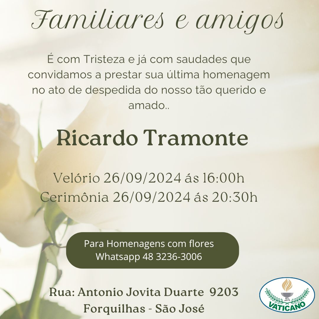 O velório ocorre às 16h desta quinta-feira, dia 26, no Crematório Vaticano, em São José. Mais tarde, às 20h30, acontece a cerimônia de despedida.