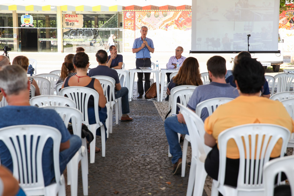 Na assembleia, realizada em frente à reitoria, professores e professoras se manifestaram e pediram apoio à paralisação da semana que vem, quando servidores públicos vão às ruas, com trabalhadores de outros setores e estudantes, contra o desmonte das universidades, os cortes orçamentários e em defesa da democracia.