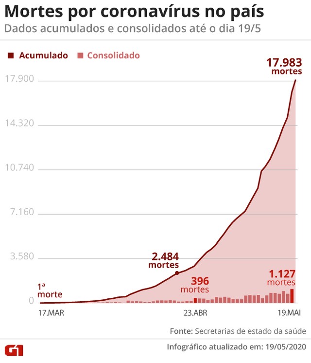 Segundo levantamento exclusivo do G1 junto às secretarias estaduais de saúde, Foram registradas 17.983 mortes provocadas pela Covid-19 e 271.885 casos confirmados da doença em todo o país.