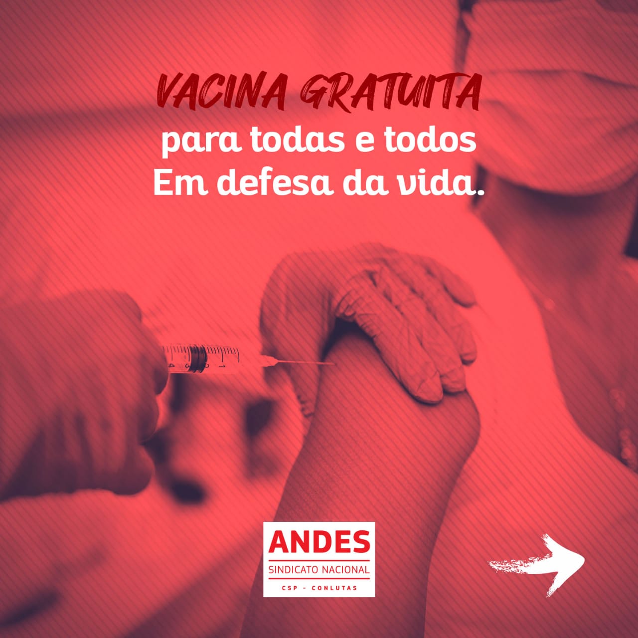 O Sindicato Nacional dos Docentes das Instituições de Ensino Superior (Andes) e a Federação de Sindicatos de Professores e Professoras de Instituições Federais de Ensino Superior e de Ensino Básico Técnico e Tecnológico (Proifes) lançam manifesto e campanha em que destacam a necessidade de vacinação e da preservação da vida, diante do cenário de pandemia.