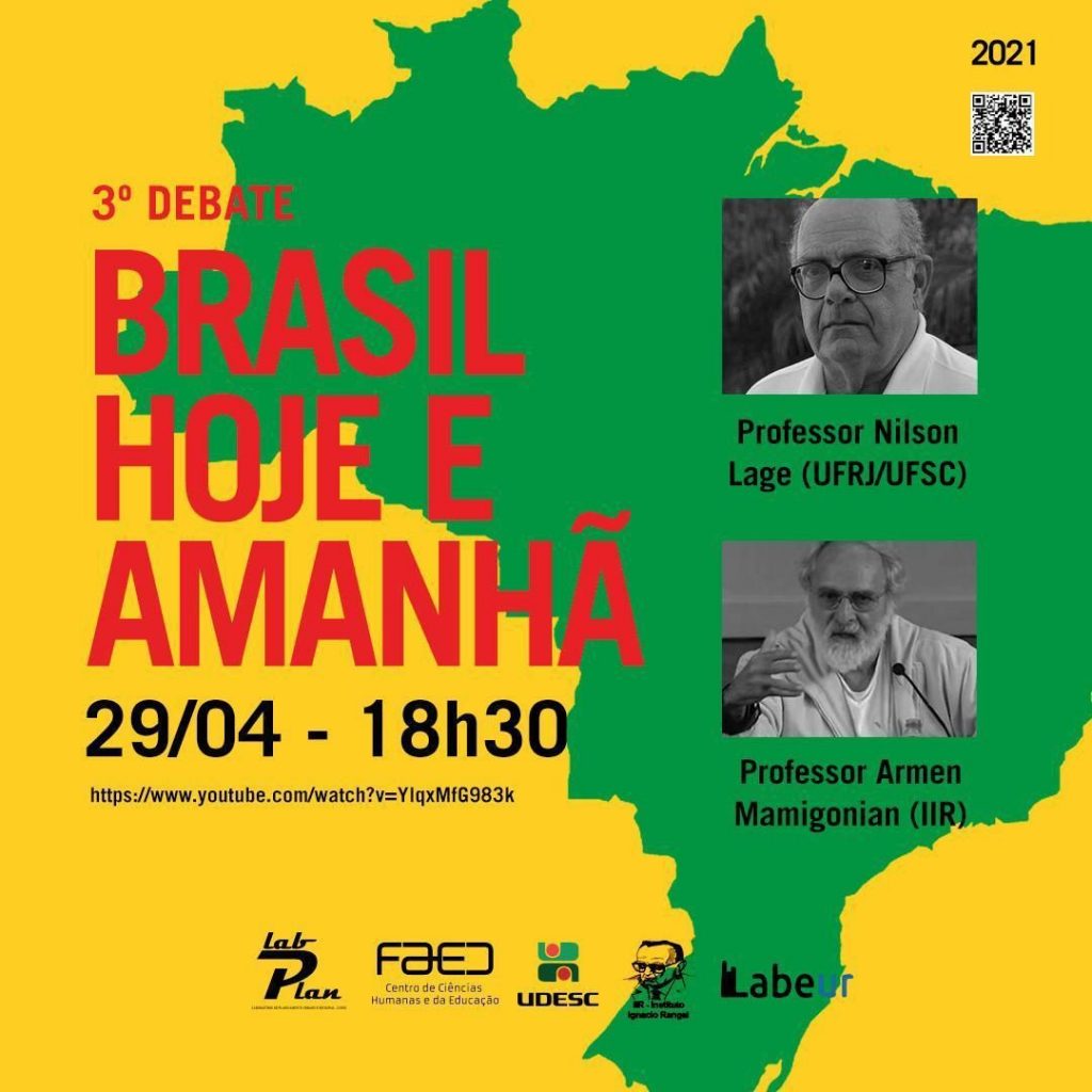 Nesta quinta-feira (29), a partir das 18h30, UFSC e Udesc promovem o “3º Debate Brasil Hoje e Amanhã”. O evento contará com a participação dos professores Armen Mamigonian (USP/UFSC) e Nilson Lage (UFRJ/UFSC). A transmissão será feita pelo YouTube.