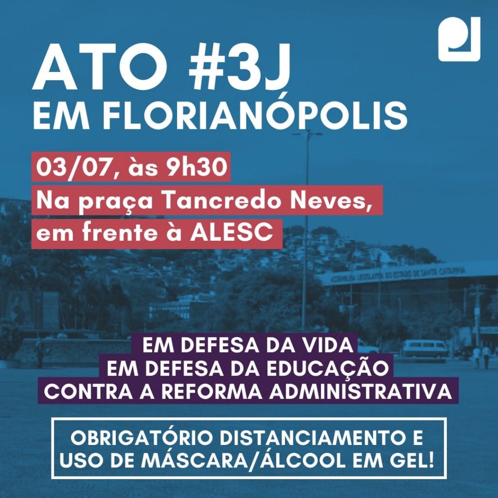 Brasileiros e brasileiras irão às ruas neste sábado (3 de julho) para pedir por vacinação, pela garantia da educação, da saúde e de todas as instituições e serviços públicos. Em Florianópolis, a manifestação ocorre às 9h30, na Praça Tancredo Neves, em frente à Assembleia Legislativa.
