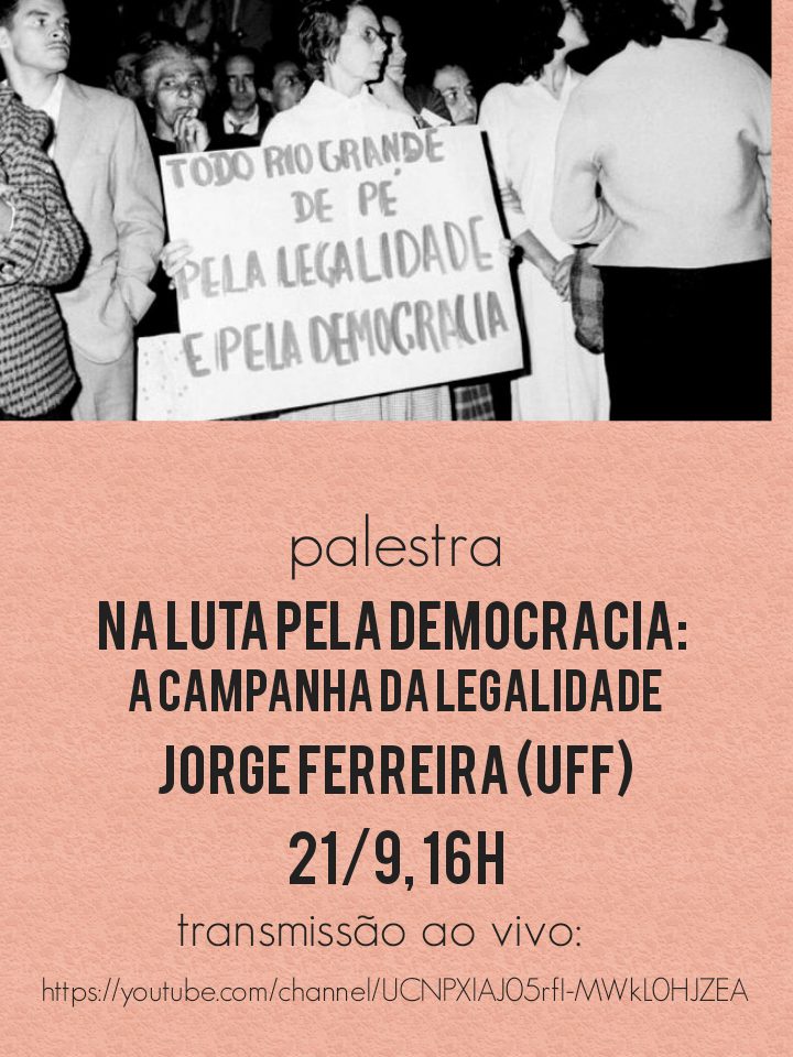 O título da conferência é  “Na luta pela democracia – a Campanha da Legalidade (1961)”. A transmissão gratuita será feita por este link.