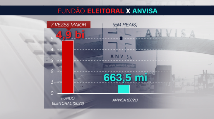 O valor do Fundo Eleitoral previsto na Lei Orçamentária Anual de 2022 corresponde, para efeitos de comparação, a sete vezes o que foi pago pelo governo federal em 2021 em ações orçamentárias para a Agência Nacional de Vigilância Sanitária (Anvisa).