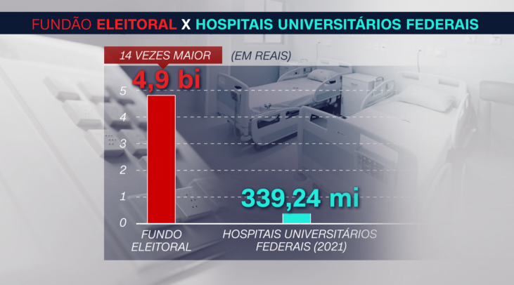 O fundo eleitoral também é quatorze vezes maior do que os investimentos na reestruturação e modernização dos hospitais universitários federais, que, em 2021, receberam R$ 339,2 milhões. Além disso, o Fundo Eleitoral também supera em doze vezes o que foi executado no Programa de Saneamento Básico em 2021, que teve um total de R$ 415 milhões.
