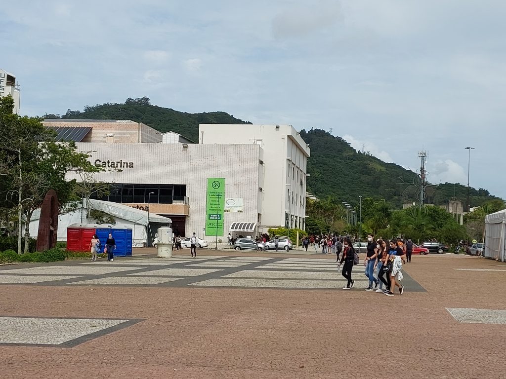 Apesar da queda no número de casos de covid, a UFSC optou por manter medidas sanitárias mais rígidas. O uso da máscaras é obrigatório na universidade, e os estudantes tiveram que apresentar o comprovante de vacinação contra covid-19 para fazer matrícula nas disciplinas.