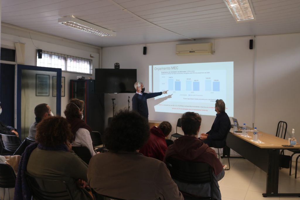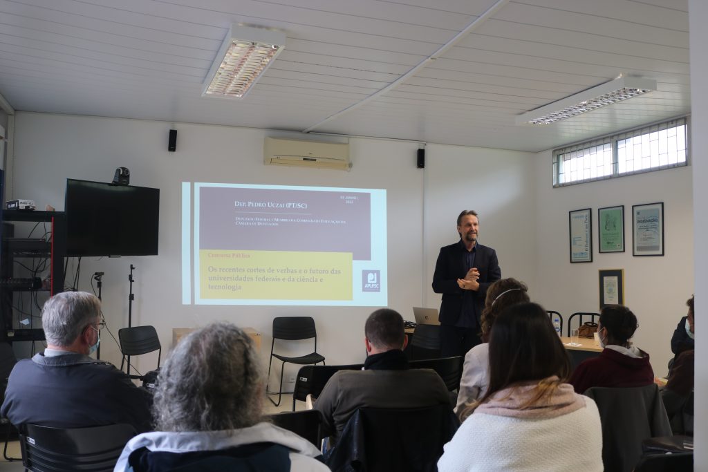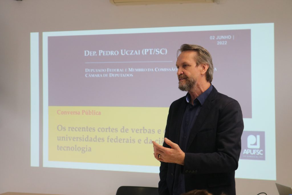 Evento teve a presença do deputado federal Pedro Uczai (PT), membro da Comissão de Educação na Câmara Federal, além de Sintufsc, DCE e APG. Nomeação da Reitoria, PEC 206 e outros assuntos também estiveram na pauta