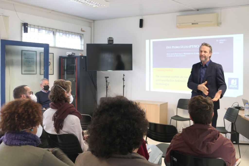 A conversa com o deputado Pedro Uczai aconteceu na sede da Apufsc no campus de Florianópolis