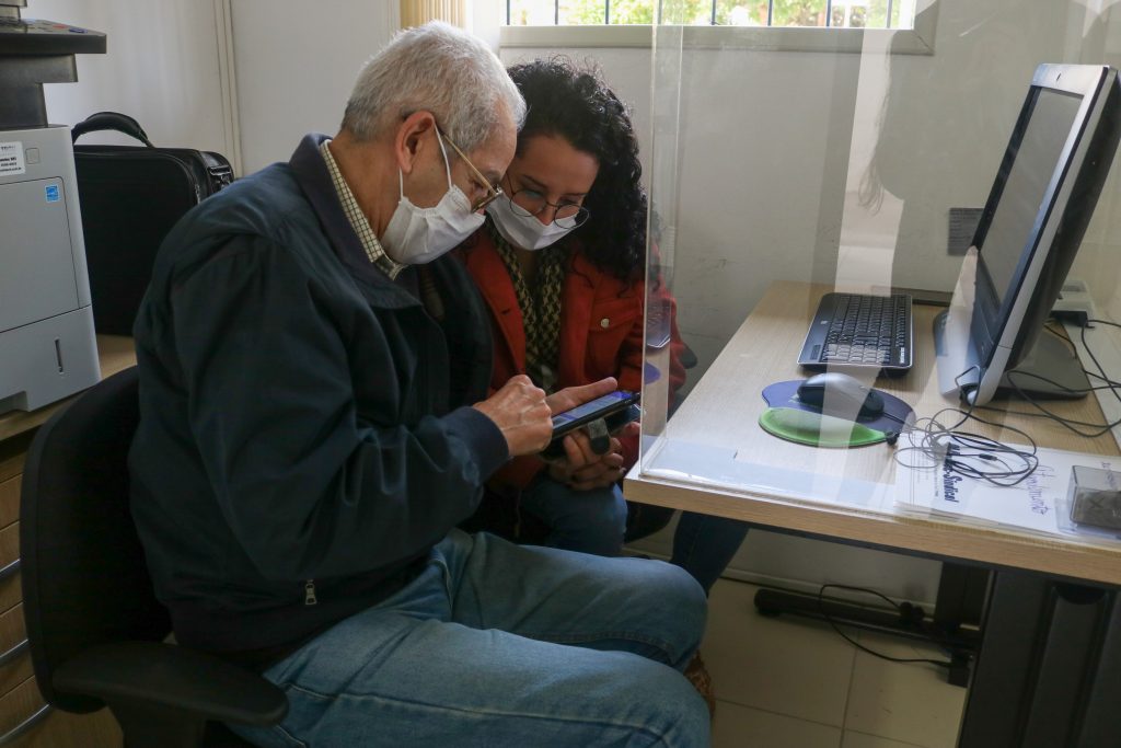 Mário Gama, 77 anos, marcou seu segundo atendimento para tirar uma série de dúvidas com Rebeca. “Nós aprendemos tarde [a usar a tecnologia] e quando a gente chega nessa idade, aprende e esquece logo. Por exemplo, a Rebeca ensina uma coisa e aí chega em casa e a gente já esqueceu. Na nossa idade é mais complicado, porque além da gente ter esse problema todo, também temos medo de mexer nas coisas e estragar”.