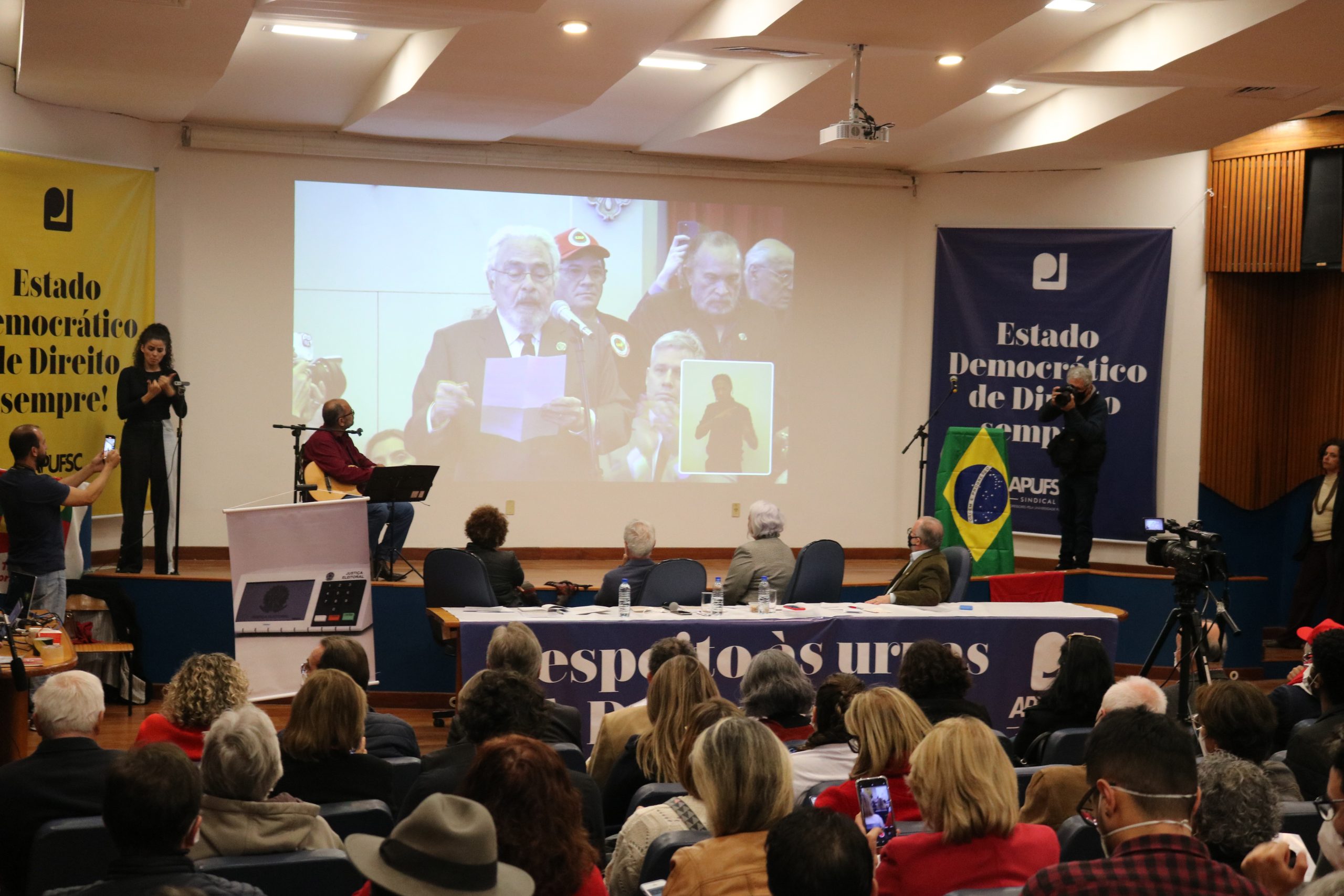 Por isso, o presidente da Apufsc enfatizou a importância da carta em resposta aos ataques feitos à democracia brasileira: “Hoje, em 2022, estamos aqui para impedir a ditadura, exigindo respeito ao resultado das eleições e para impedir um golpe com nova roupagem”. E encerrou: “Essa não é uma cartinha, senhor presidente. Essa é uma advertência, é o posfácio do povo para adensar a Constituição Cidadã de 1988”.