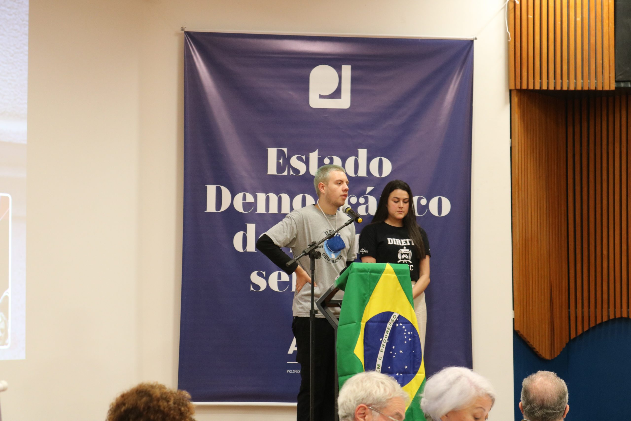 O movimento estudantil também esteve presente no ato, representado por Lucas Bonatto e Victoria Salgado. Lucas convocou os presentes a participarem também de outras mobilizações: “Precisamos ir além dessa carta. Precisamos ir às ruas”. Vitória falou da esperança de ter “um país de volta aos brasileiros”.