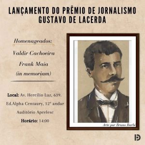 Para marcar o aniversário de 15 anos do Portal Desacato, celebrados nesta quinta-feira, dia 25 de agosto, a mídia independente irá instituir e entregar o Prêmio Gustavo de Lacerda ao jornalista e ilustrador Frank Maia, que faleceu em junho deste ano, e ao jornalista e ex-diretor do Sindicato dos Jornalistas de Santa Catarina, Valdir Cachoeira, em reconhecimento aos serviços prestados à classe trabalhadora. O evento será nesta quinta às 14 horas, no auditório da APCelesc, com a introdução do historiador Fábio Garcia. Bruno Barbi é o autor das aquarelas que serão entregues aos homenageados.