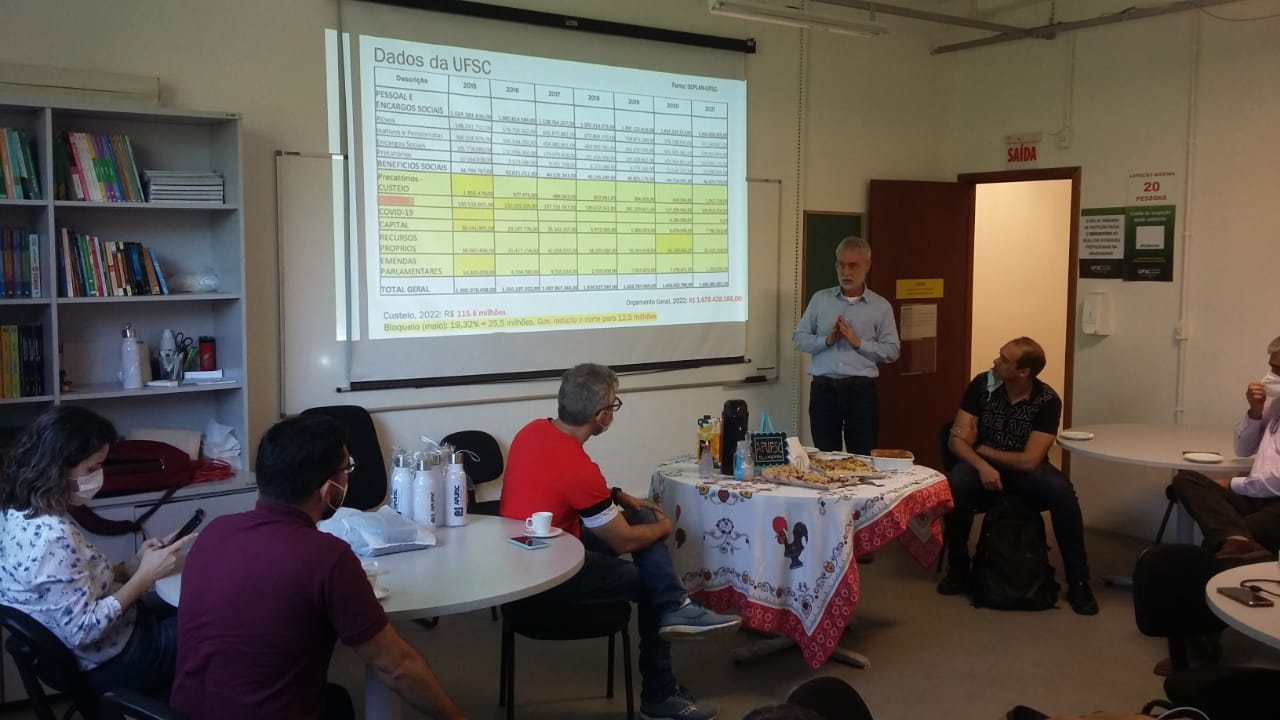 Em encontro com docentes em Blumenau, presidente da Apufsc fala sobre condições de trabalho da categoria e o papel do sindicato