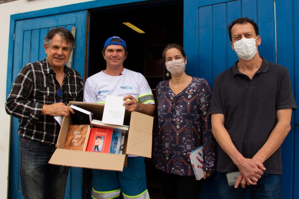 Entrega de livros no Museu do Lixo da Comcap (Foto: Agecom UFSC/Divulgação)