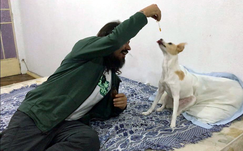 Yara foi a “paciente zero” do professor Erik Amazonas. Aos oito meses de idade, a cachorrinha começou a usar o óleo de cannabis, ou canabidiol, para tratar crises convulsivas (Foto: UFSC/Divulgação)