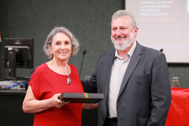 A professora Andréa Zanella, da UFSC, leu um texto qualificando o homenageado como um plantador de sementes, que apostou na ciência e, na inserção no Partido Comunista Brasileiro (PCB), militou na sala de aula, no posto de saúde e no sindicato. Citou Marcão nas rodas de música com seu violão, na luta contra a mordaça no AI-5 e nos debates em 1968 pela cultura popular. “Ele dizia ‘desistir da luta jamais’. Os problemas sociais continuam, mais de 60 milhões de brasileiros passam fome e todos dias milhares de crianças são internadas com desnutrição”, concluiu.