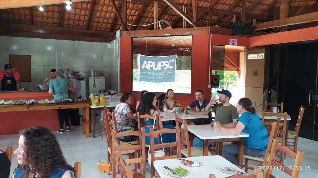 Confraternizações de fim de ano foram realizadas pela Apufsc-Sindical nos campi do interior. No dia 7 de dezembro, o evento foi realizado em Araranguá. No dia 10, em Curitibanos. Os encontros contaram com a participação de filiados e filiadas e seus familiares. No último fim de semana foi a vez de Joinville, onde o encontro foi realizado em parceria com a UFSC e reuniu docentes, técnicos e terceirizados.