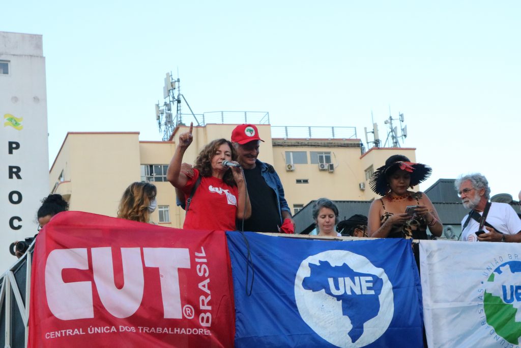 A liderança indígena Ingrid Assis, dirigente da Central Sindical e Popular Conlutas, também discursou e afirmou que “existe, sim, povo de luta em Florianópolis”, e enfatizou que “o povo indígena defende a democracia”.