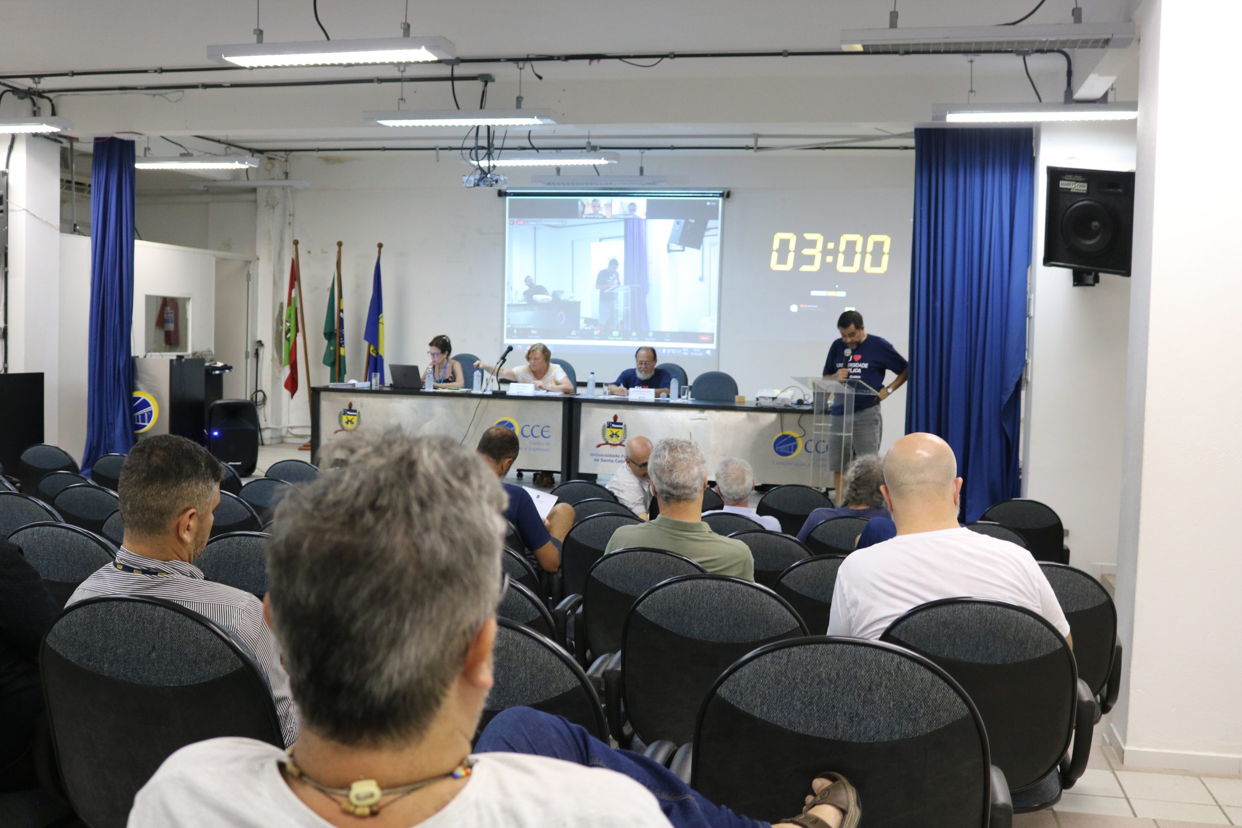 Bernardo Walmott Borges, representante do campus Araranguá na Diretoria da Apufsc-Sindical e representante do sindicato no Conselho Deliberativo do Proifes-Federação, complementou a colocação do vice-presidente: “Da maneira como está acontecendo a negociação em Brasília, via fóruns, a gente de fato quer que essa negociação se encerre logo. É claro, com todas essas ressalvas de que 9% está longe de ser o ideal. Para que nós possamos entrar nas mesas de negociações setoriais o mais rápido possível, para a gente discutir a LOA [Lei Orçamentária Anual] 2024.”