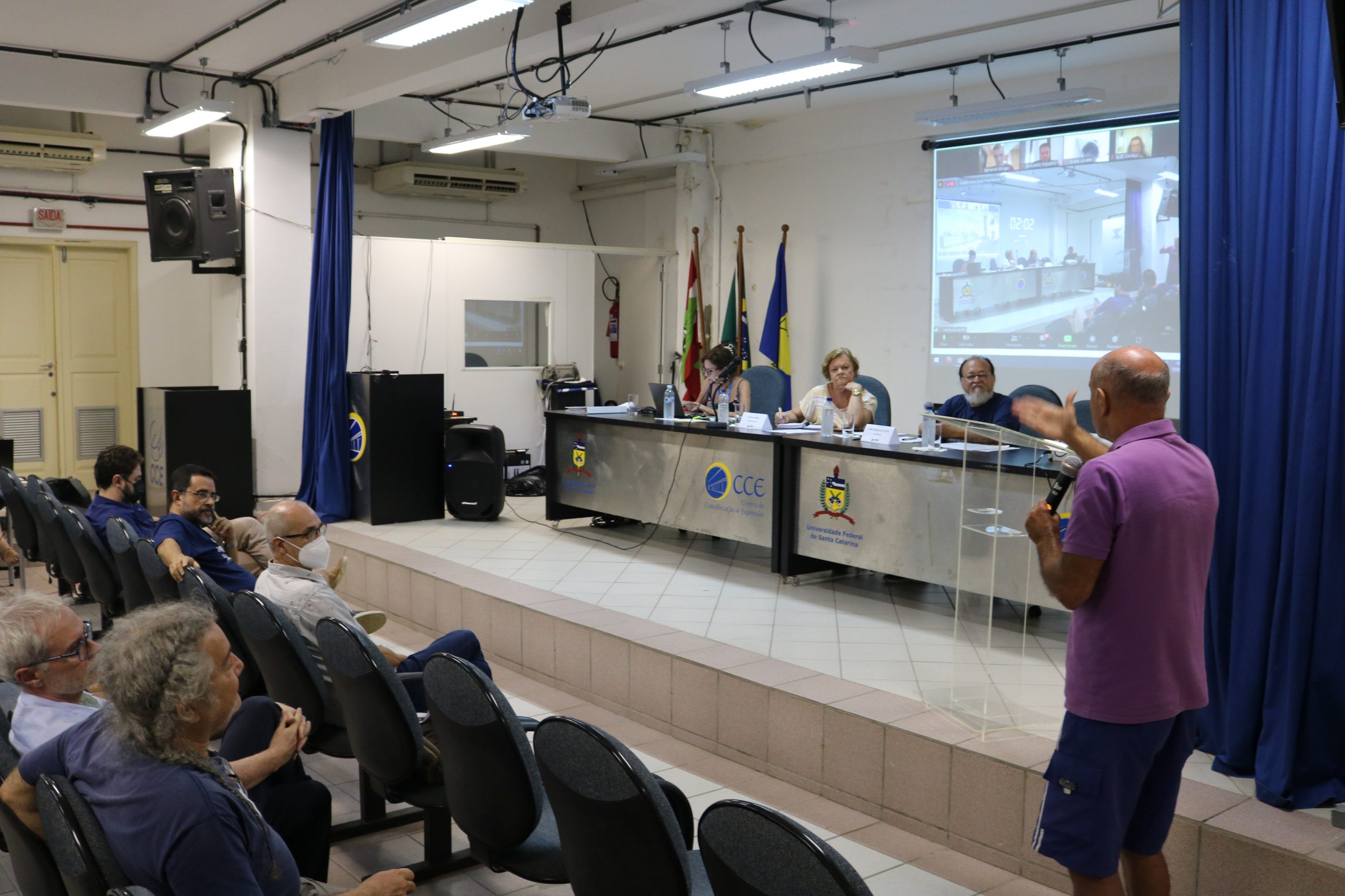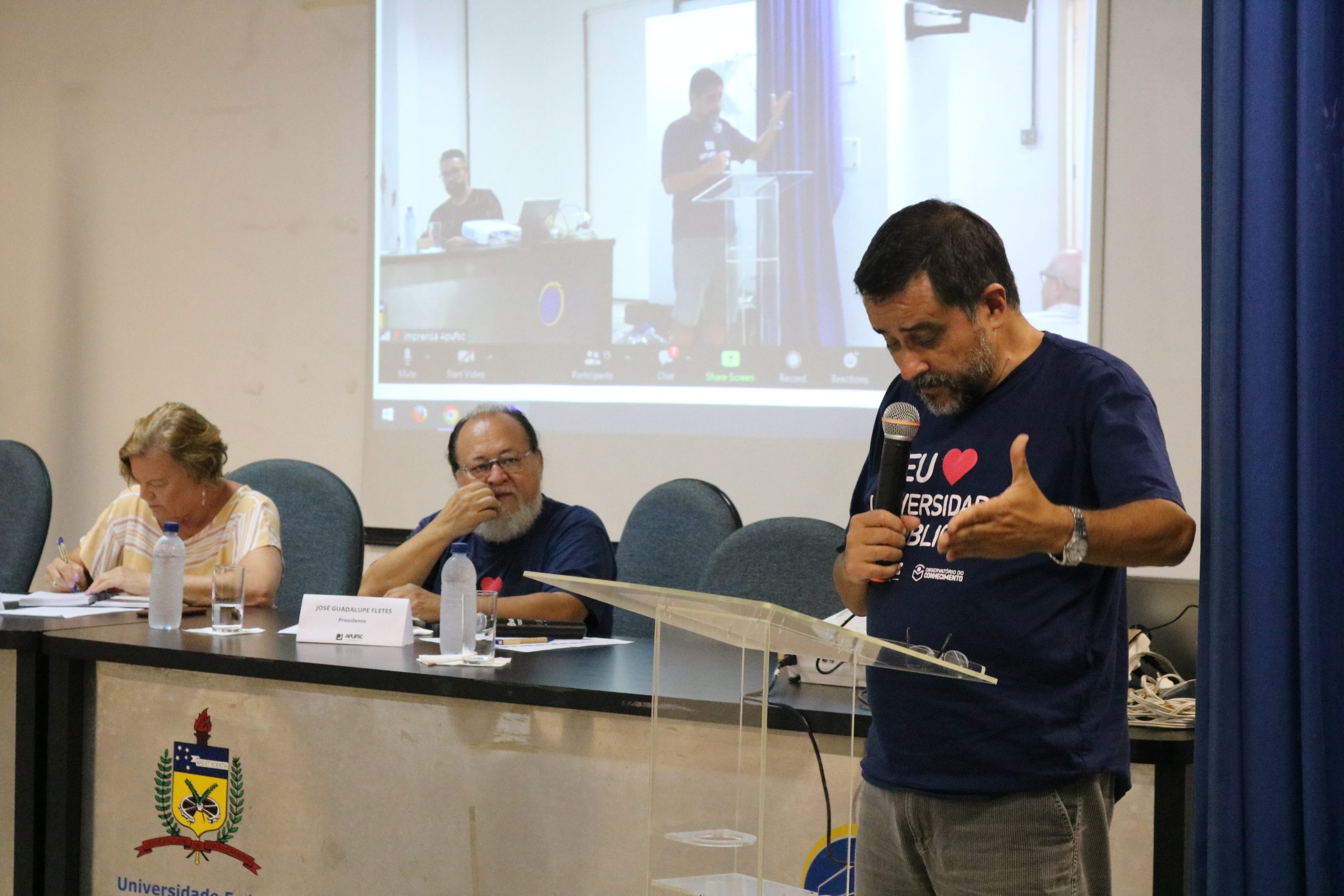 O vice-presidente da Apufsc-Sindical, Adriano Luiz Duarte, apresentou a contraproposta do governo federal e a orientação da Diretoria quanto à questão, que é aceitar a proposta com a condição de que sejam abertas mesas setoriais de negociação. Dessa forma, é possível discutir carreira docente e reposição das perdas salariais, que já são de 42,52%.