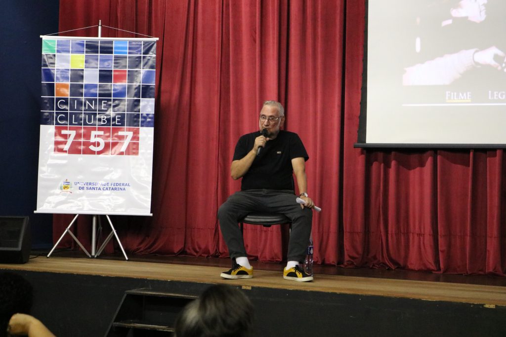 Apesar de fazer essa palestra há 20 anos, a noite também foi de estreia para Cava. “Eu estou morando há três anos em Florianópolis. Eu cheguei em Florianópolis e veio a pandemia. Então esse é minha primeira exposição em Florianópolis, minha primeira palestra também e o primeiro filme que eu vou exibir. Para mim, tem um valor simbólico muito grande de volta, de retorno e de estreia também”, contou à Apufsc.