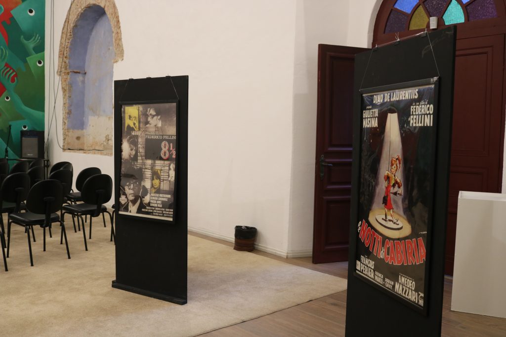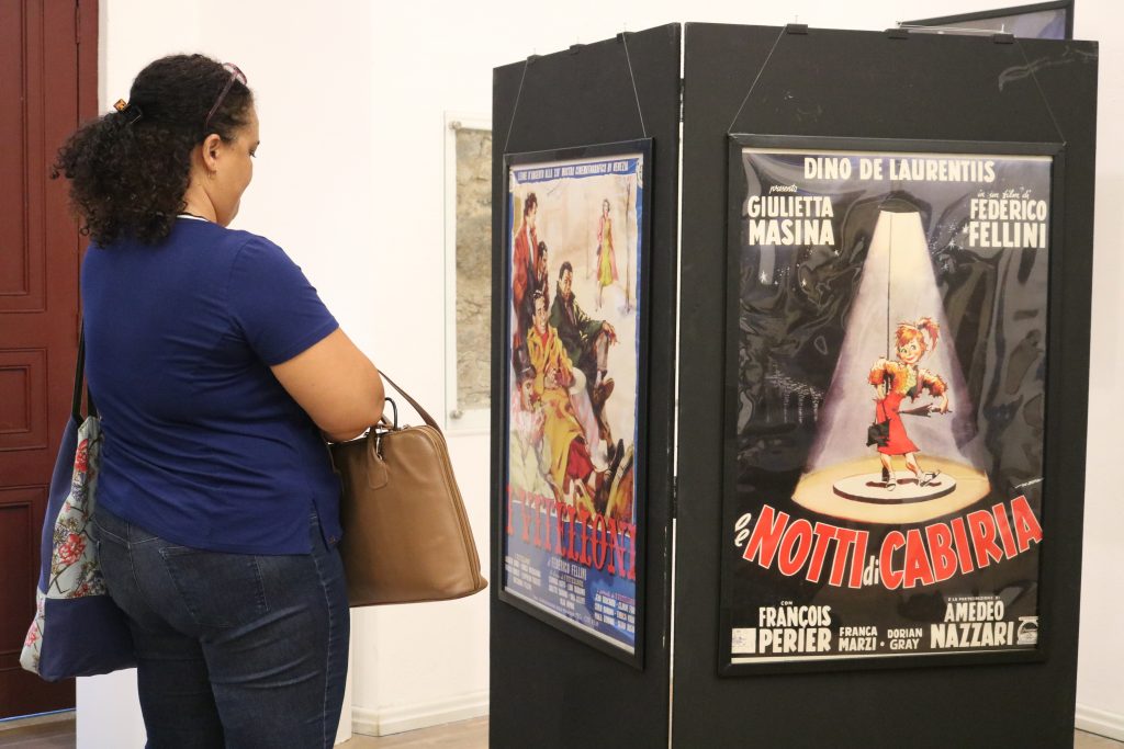 Parte do acervo da exposição permanente sobre Fellini do Museu Guido Viaro, de Curitiba, os cartazes originais dos filmes foram trazidos à Florianópolis para a estreia do Cineclube 757 (Fotos: Lais Godinho/Apufsc)