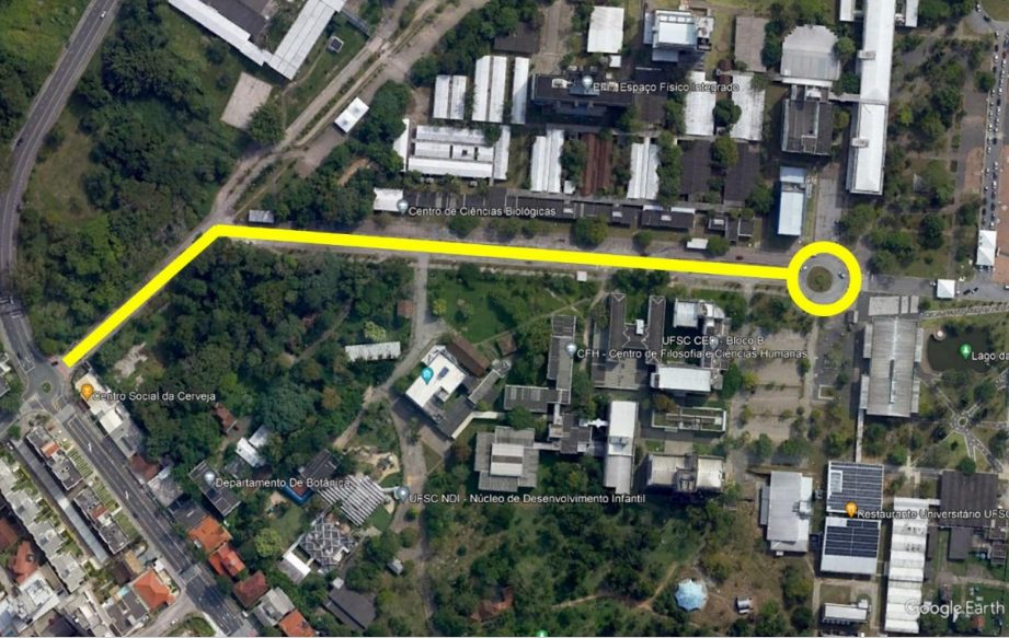 O trânsito de acesso ao campus de Florianópolis da Universidade Federal de Santa Catarina (UFSC) pelo bairro Carvoeira estará parcialmente interrompido a partir desta quarta-feira, dia 19. A Prefeitura Universitária (PU) informa que, nesta data, começa a execução de recuperação asfáltica na rua Engenheiro Agrônomo Andrey Cristian Ferreira, que é a via que passa em frente ao Centro de Filosofia e Ciência Humanas (CFH), ao Centro de Ciência da Educação (CED), ao Centro de Ciência Biológicas (CCB), além de outros prédios, e também dá acesso ao Colégio de Aplicação (CA). O trânsito estará parcialmente interrompido até a rótula do Centro de Convivência, conforme mapa abaixo. Expectativa é de que restauração seja concluída ainda nesta semana.