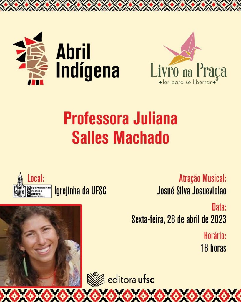 No evento desta sexta, Juliana vai falar sobre povos indígenas, trajetórias históricas e desafios contemporâneos. O encontro terá ainda apresentação musical de Josué Silva, e uma seleção de livros da EdUFSC sobre a temática indígena.