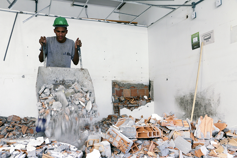 Nesta etapa, os trabalhadores da empresa contratada estão derrubando paredes e readequado o espaço para a reforma (Foto: Salvador Gomes/Agecom/UFSC)
