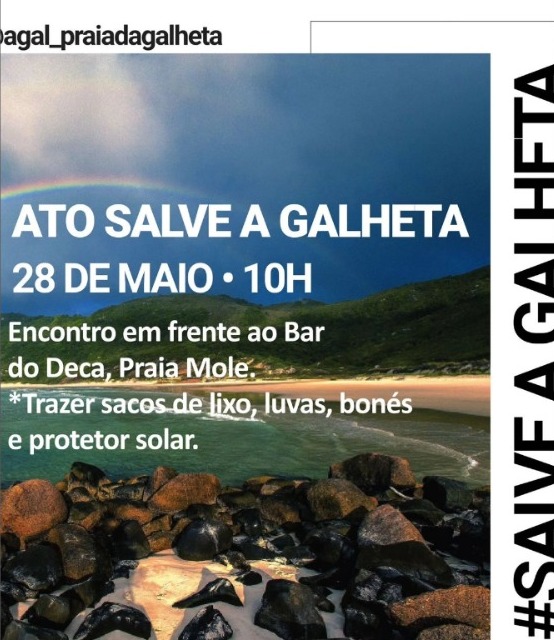 “Precisamos da sua ajuda para salvar a praia da Galheta e o naturismo contra a desordem, o abandono e a degradação”, diz o convite publicado pela Agal nas redes sociais. Segundo a entidade, o ato pretende levantar a discussão sobre a importância histórica da praia e a prática do naturismo, conscientizar as pessoas sobre a preservação do meio ambiente, alertar a opinião e o poder públicos sobre a insegurança e a degradação ambiental que usos inadequados vêm causando à natureza.