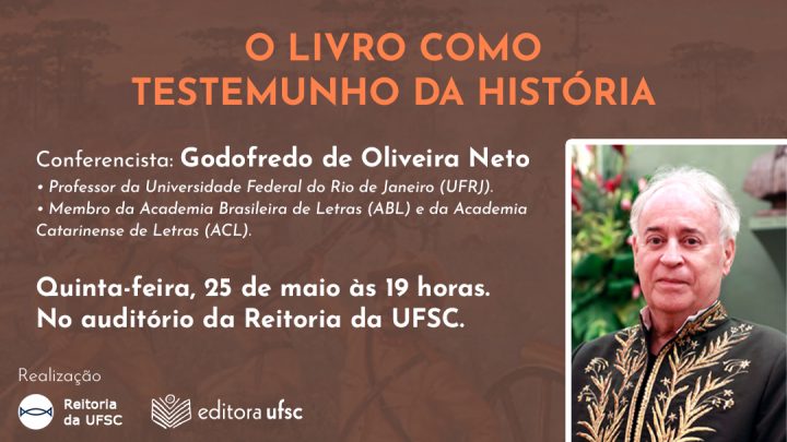 A Reitoria da Universidade Federal de Santa Catarina (UFSC) e a EdUFSC promovem a conferência “O livro como testemunho da história”, ministrada por Godofredo de Oliveira Neto, escritor catarinense, professor da Universidade Federal do Rio de Janeiro (UFRJ) e membro da Academia Brasileira de Letras (ABL). O evento será realizado na quinta-feira, dia 25, às 19h, no auditório da Reitoria da UFSC.