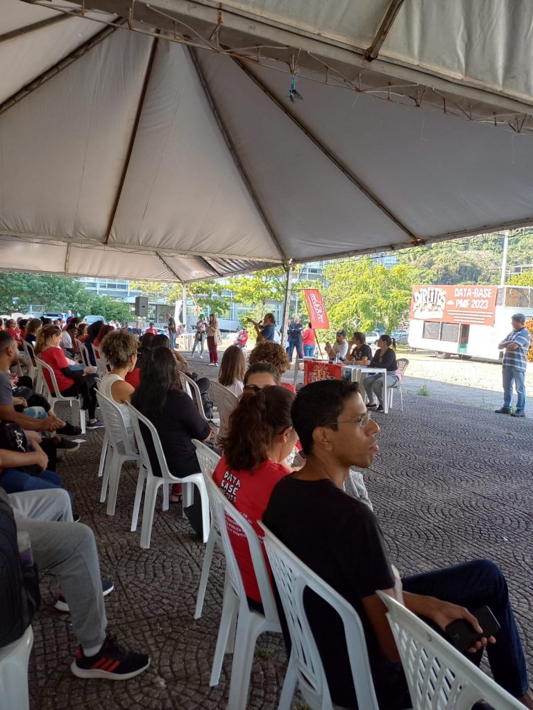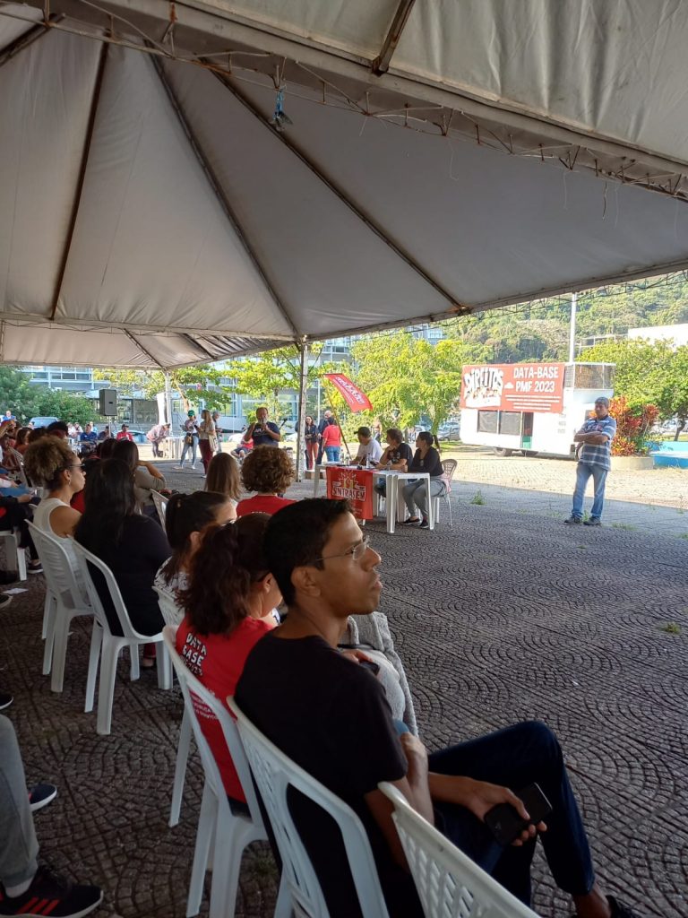 Em nova assembleia realizada nesta segunda-feira, dia 5, os servidores decidiram dar continuidade à greve, apesar das ameaças. O presidente da Apufsc-Sindical, José Guadalupe Fletes, esteve presente na assembleia para declarar o apoio do sindicato aos servidores públicos de Florianópolis.