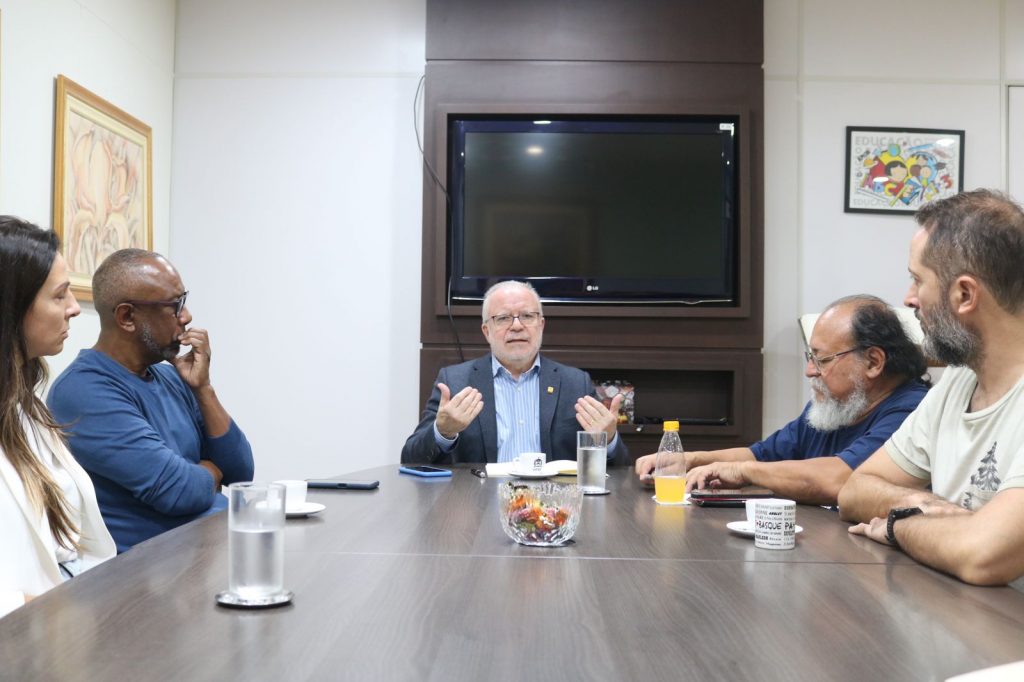 Audiência aconteceu no gabinete do reitor e teve participação de membros da gestão atual e anterior de Diretoria da Apufsc (Fotos: Lais Godinho/Apufsc)