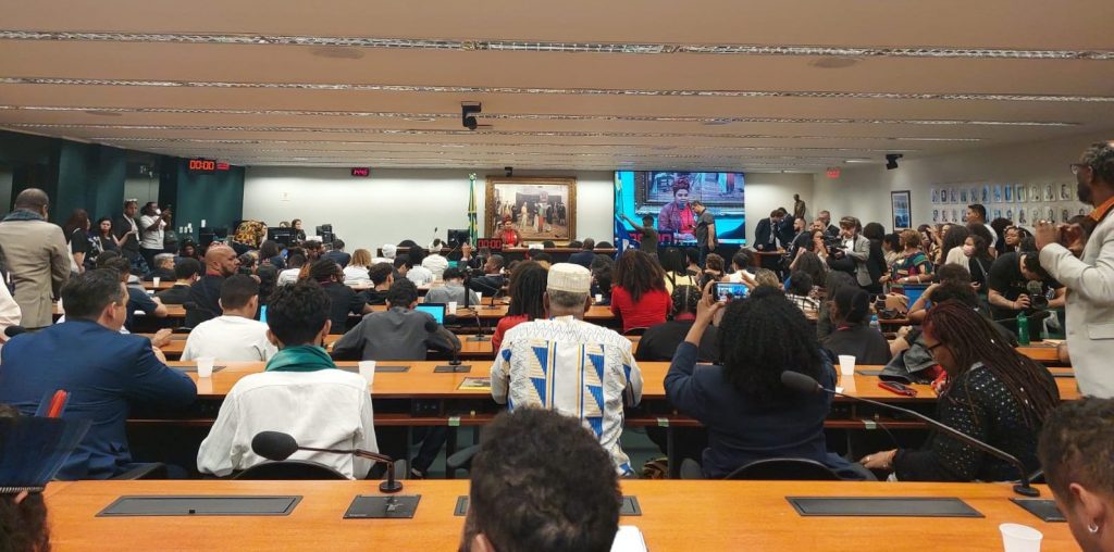 Durante a tarde, as professoras participaram, na Câmara dos Deputados, da audiência “Cotas abrem portas! Ações afirmativas, justiça racial e democracia no Brasil”, de autoria da Deputada Dandara (PT-MG), que é coordenadora da Frente Parlamentar Mista Antirracismo e relatora da revisão da Lei de Cotas, promulgada em 2012 pelo governo federal. Após dez anos da publicação do texto, novo projeto coordenado pela deputada quer tornar permanente a reserva de vagas nas universidades e instituições federais de ensino técnico de nível médio.