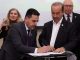 O presidente da República, Luiz Inácio Lula da Silva, ao lado do ministro de Estado da Educação, Camilo Santana, sancionou, nesta segunda-feira, dia 31, a lei que institui o Programa Escola em Tempo Integral. A cerimônia, transmitida ao vivo pelo canal do Ministério da Educação (MEC) no YouTube, foi no Salão Nobre do Palácio do Planalto, em Brasília (DF).