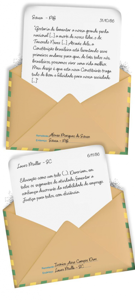 “Foi um marco histórico e acho minha atitude louvável, pois, na época, tudo era uma dificuldade. Principalmente nas regiões mais distantes, carentes, os direitos sociais da população eram negados”, lembrou o aposentado Afonso Marques de Sousa, autor de uma das mais de 72 mil mensagens que cidadãos enviaram ao Congresso Nacional durante os 20 meses de funcionamento da Assembleia Constituinte.