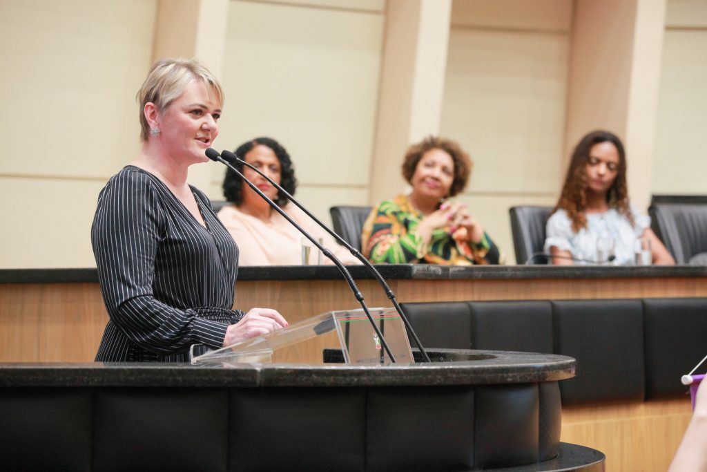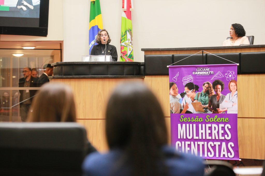 “É a primeira sessão em homenagem às mulheres cientistas. Espero que a Assembleia tenha conseguido retribuir de forma simbólica o trabalho e a esperança que vocês representam de dias melhores para o nosso estado. Estamos celebrando toda excelência feminina na pesquisa, no ensino e na produção do conhecimento, com protagonismo e valiosas contribuições”, discursou a deputada Luciane Carminatti (PT), propositora da homenagem.