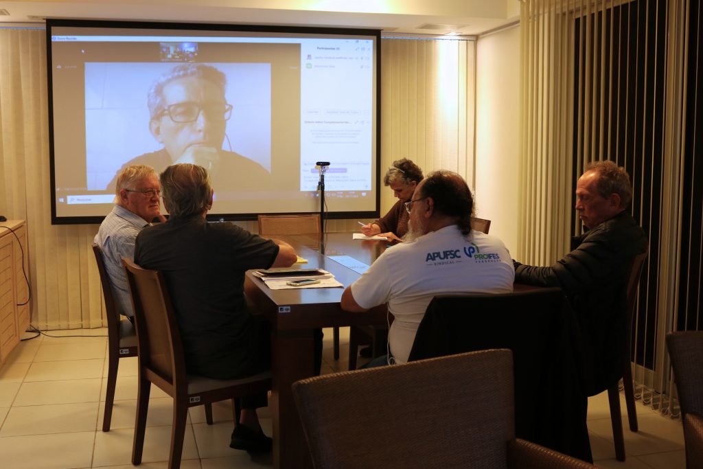 Como entre os presentes apenas Raul Valentim era do CTC e Armando Fiuza do CFM, o grupo acabou discutindo possíveis projetos que possam ser desenvolvidos pelo sindicato, em benefício dos aposentados e aposentadas. O ex-presidente da Apufsc Carlos Woloswki Mussi destacou que como mais de 50% dos filiados e filiadas não estão mais na ativa, é preciso olhar com atenção para eles. Ele sugeriu que a Apufsc crie um grupo de assistência para visitar os aposentados com algum problema de saúde ou vulnerabilidade.