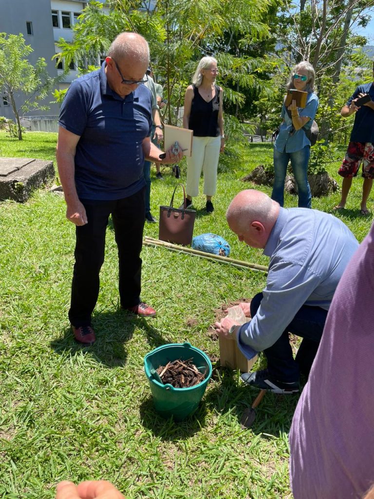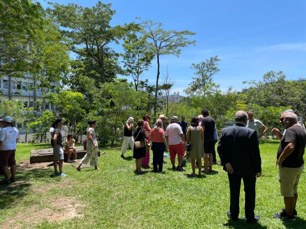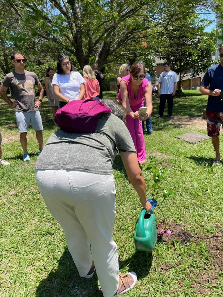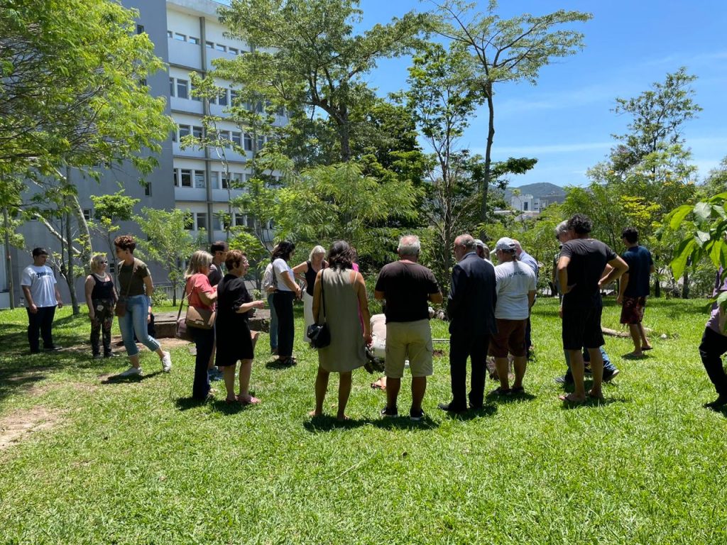 Cinzas foram misturadas com a terra usada para o plantio de uma pitangueira em cerimônia promovida pela Direção do CFH, Gabinete da Reitoria e familiares