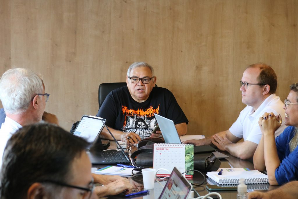 Com a certeza de que o próximo triênio será de grande responsabilidade e de muitos desafios, o novo presidente do Proifes-Federação, Wellington Duarte, abriu a primeira reunião da nova Diretoria da entidade, eleita para o período 2024-2027, nesta quarta-feira, dia 31, em Brasília. A reunião, que continua nesta quinta-feira, dia 1°, teve a partipação de dois representantes da Apufsc-Sindical que compõem a Diretoria da federação: Carlos Alberto Marques e Romeu Bezerra.