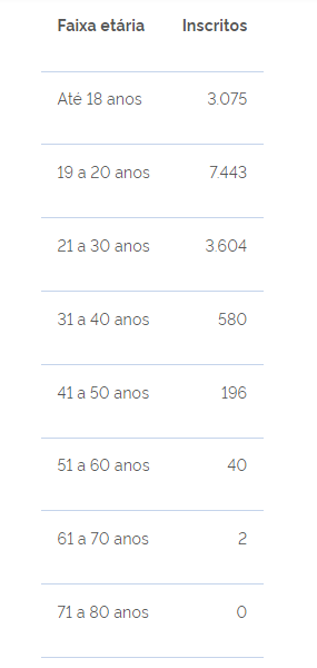 Confira a faixa etária dos inscritos em Santa Catarina