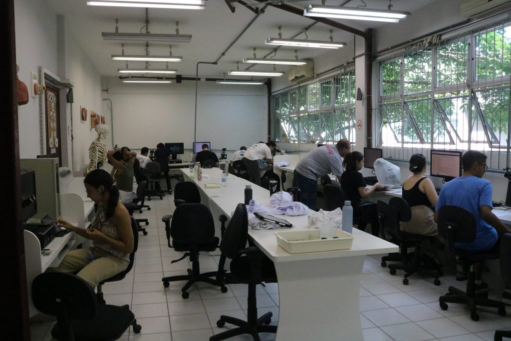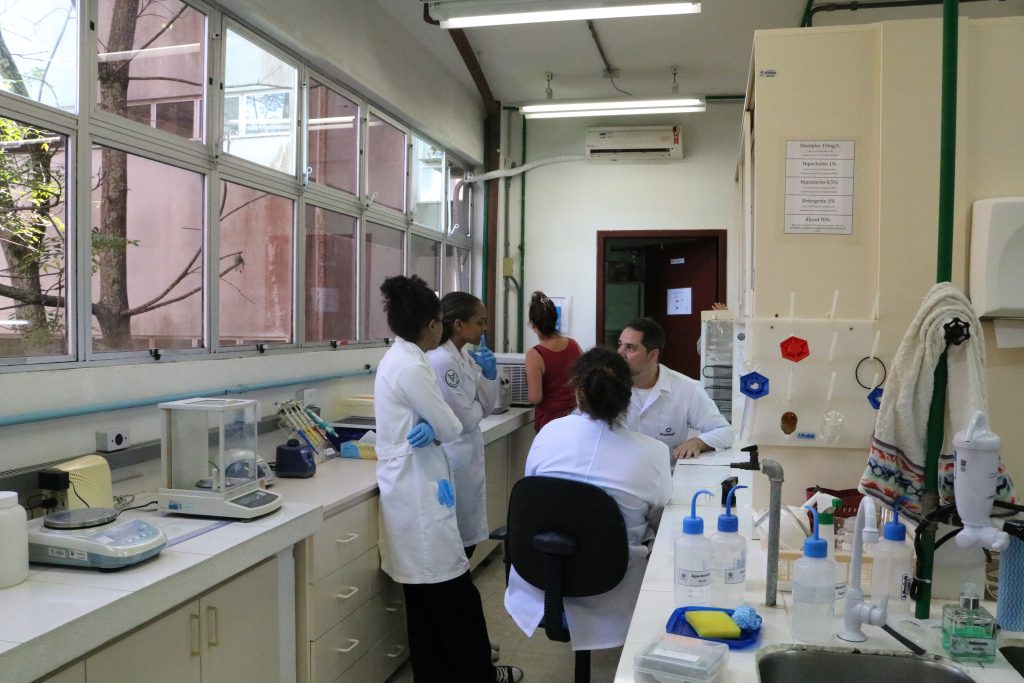 Durante a visita da Comissão aos laboratórios, outra professora enfrentava o mesmo problema na sala ao lado. Ela conta que também precisou dispensar o uso de jalecos naquela aula por conta do calor. Segundo a docente, o ar-condicionado até funciona no laboratório, mas não pode ficar ligado, porque a água goteja em cima dos computadores.