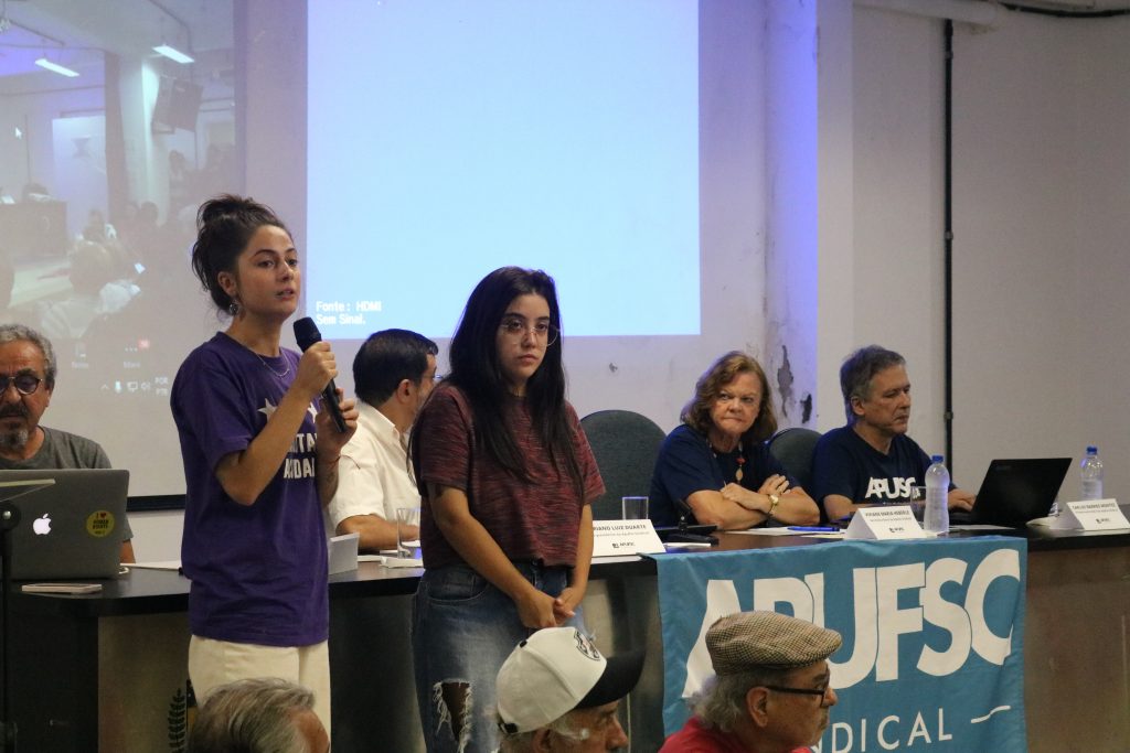 Representantes do TAEs e DCE participaram da Assembleia (Foto: Ana Laura Baldo/Apufsc)