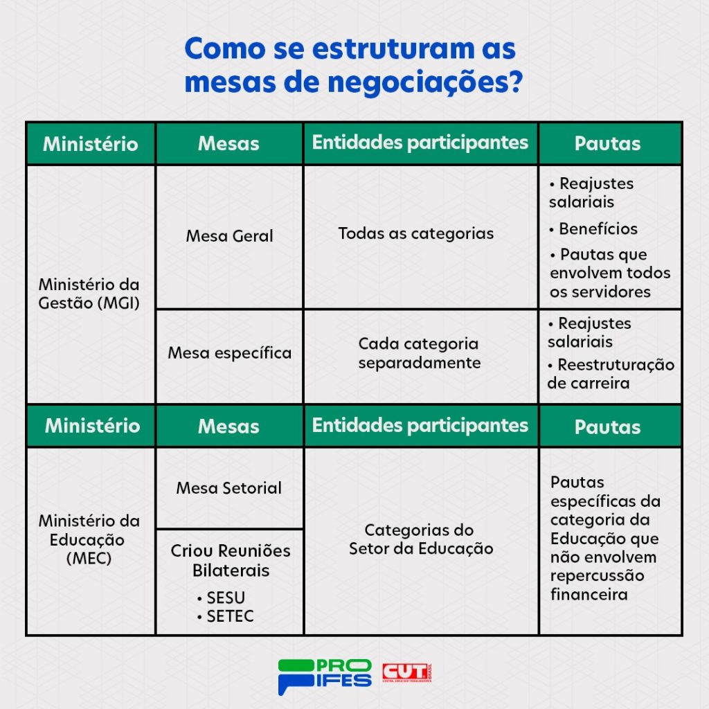 Entenda como funciona cada uma das mesas de negociação em andamento: