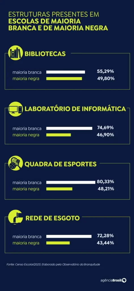 “Uma educação com igualdade de oportunidades também passa por uma infraestrutura escolar que garanta o desenvolvimento pleno de todos os alunos”, aponta a conclusão do estudo do Observatório da Branquitude.