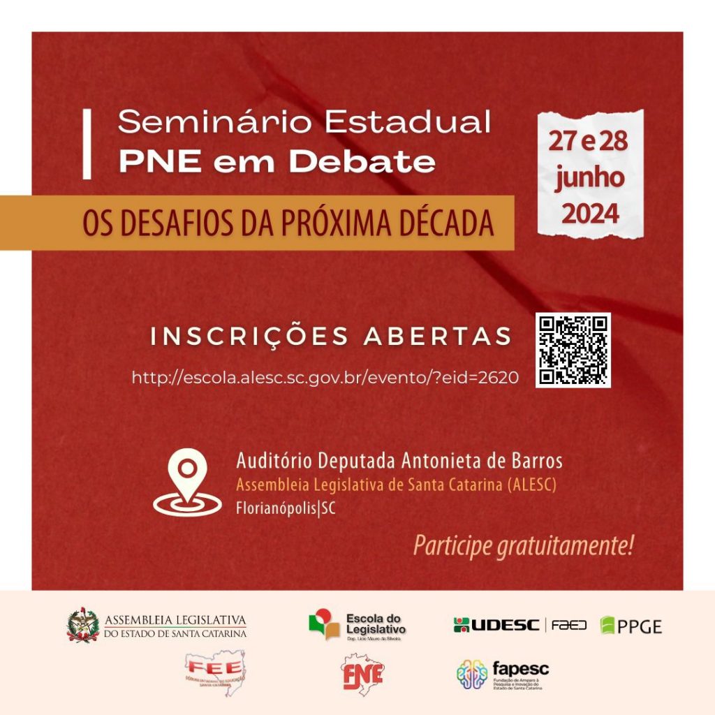 Objetivo do evento é promover um debate sobre o Plano Nacional de Educação (PNE) em Santa Catarina, com a intenção de identificar os desafios e oportunidades para os próximos dez anos da educação nacional. Assim, o seminário será um espaço para diálogo entre professores, legisladores, sociedade civil, para troca de ideias sobre os problemas globais, nacionais e locais.